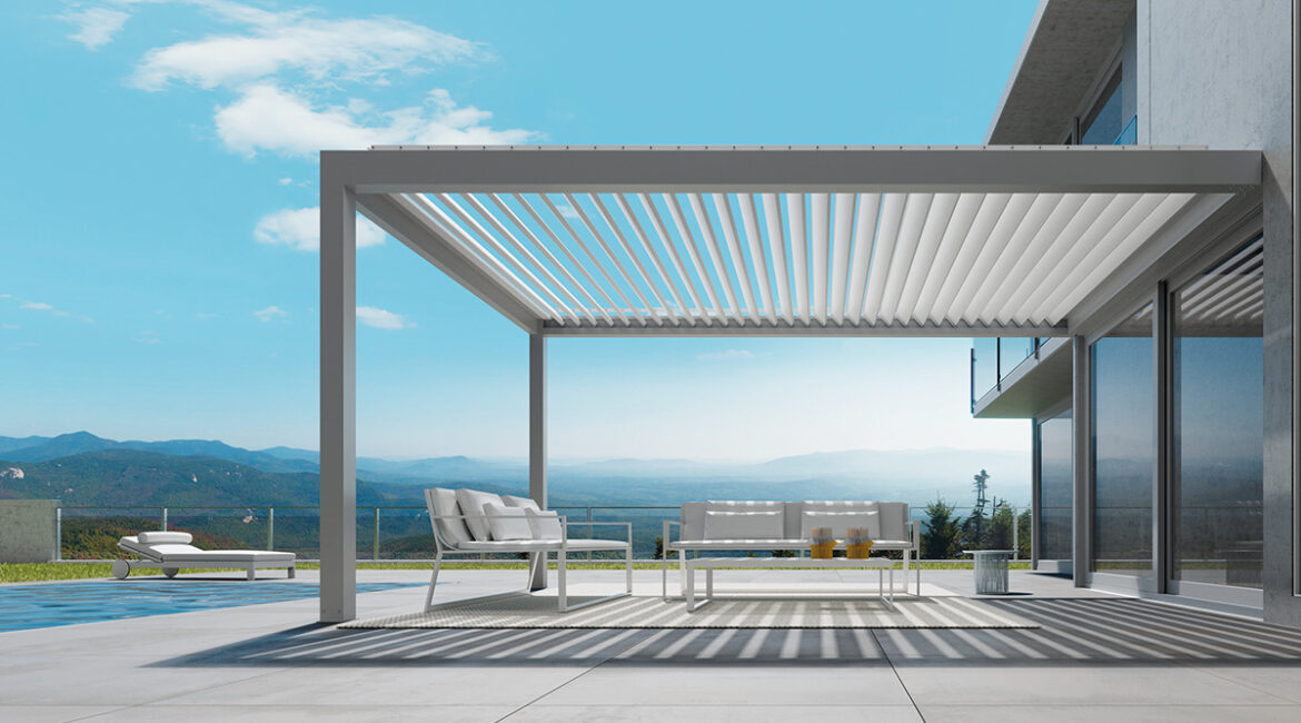 Las pérgolas bioclimáticas son estructuras de aluminio con lamas orientables que regulan luz, ventilación y protección frente a lluvia y viento. Los sensores y la motorización permiten automatizar la apertura/cierre para mantener una temperatura agradable y aprovechar al máximo tu terraza o jardín.